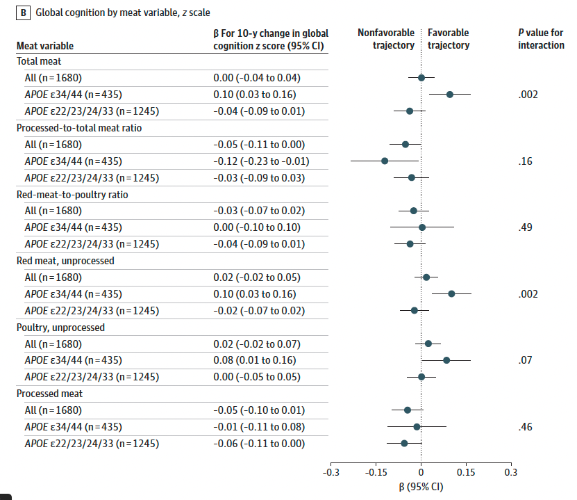 Norgren J, Carballo-Casla A, Grande G, et al. Meat Consumption and Cognitive Health by APOE Genotype. JAMA Network Open. 2026;9(3):e266489. doi:10.1001/jamanetworkopen.2026.6489